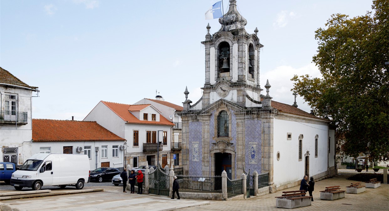 Igreja Matriz, de finais do século XVIII, forrada a azulejo azul e branco