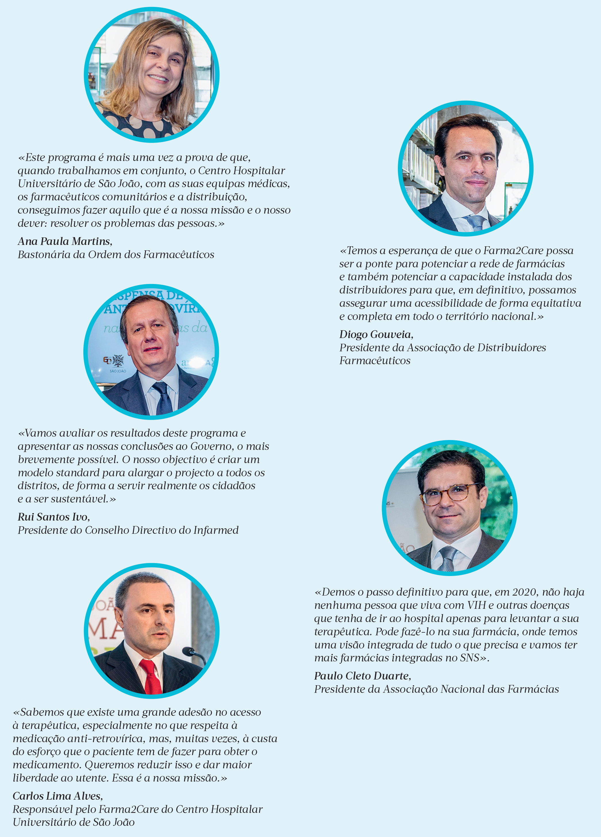 O Farma2Care resulta de uma parceria entre o CHUSJ, a Ordem dos Farmacêuticos (OF), a Associação de Distribuidores Farmacêuticos (ADIFA) e a Associação Nacional das Farmácias (ANF), para garantir aos utentes um acompanhamento de proximidade. «É uma visão integrada de toda a medicação que os utentes têm de cumprir. O nosso objectivo é que, daqui a um ano, esteja presente em todas as zonas do país», disse Paulo Cleto Duarte, presidente da ANF, durante a apresentação, realizada em Braga, no Dia Mundial Contra a Sida.