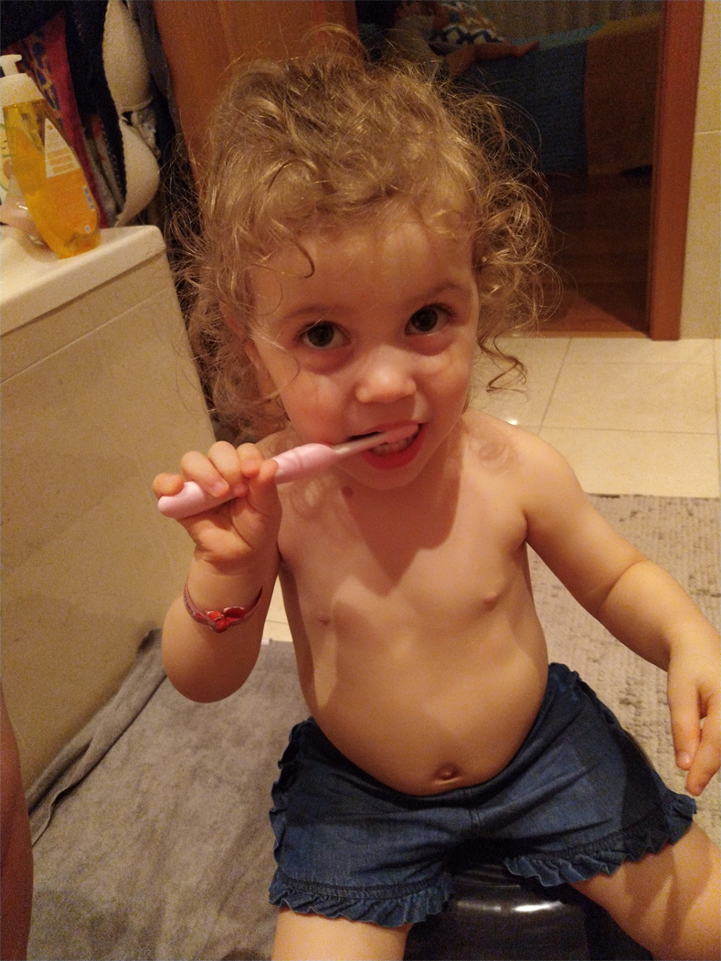 Rodrigo, o Bebé Saúda de Lisboa, começou com uma dedeira aos 12 meses e só depois passou para a escova de dentes «pelo menos duas vezes por dia (a seguir às refeições). Para ele já se tornou parte da rotina diária», conta a mãe, Ana Sanches.